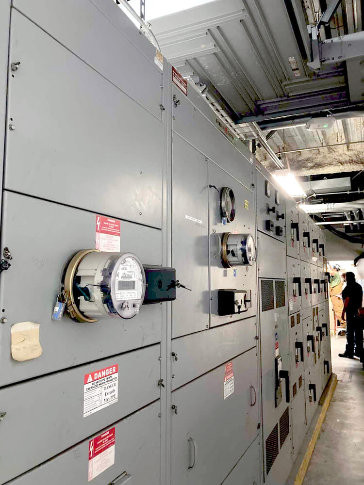 Scope of work included the installation of all-new breakers and modifications of the existing 4000 amp main breaker. New conduits, conductors, kirk-key’s, and a power monitor were installed to interlock the essential and non-essential distribution panels.