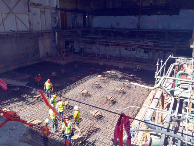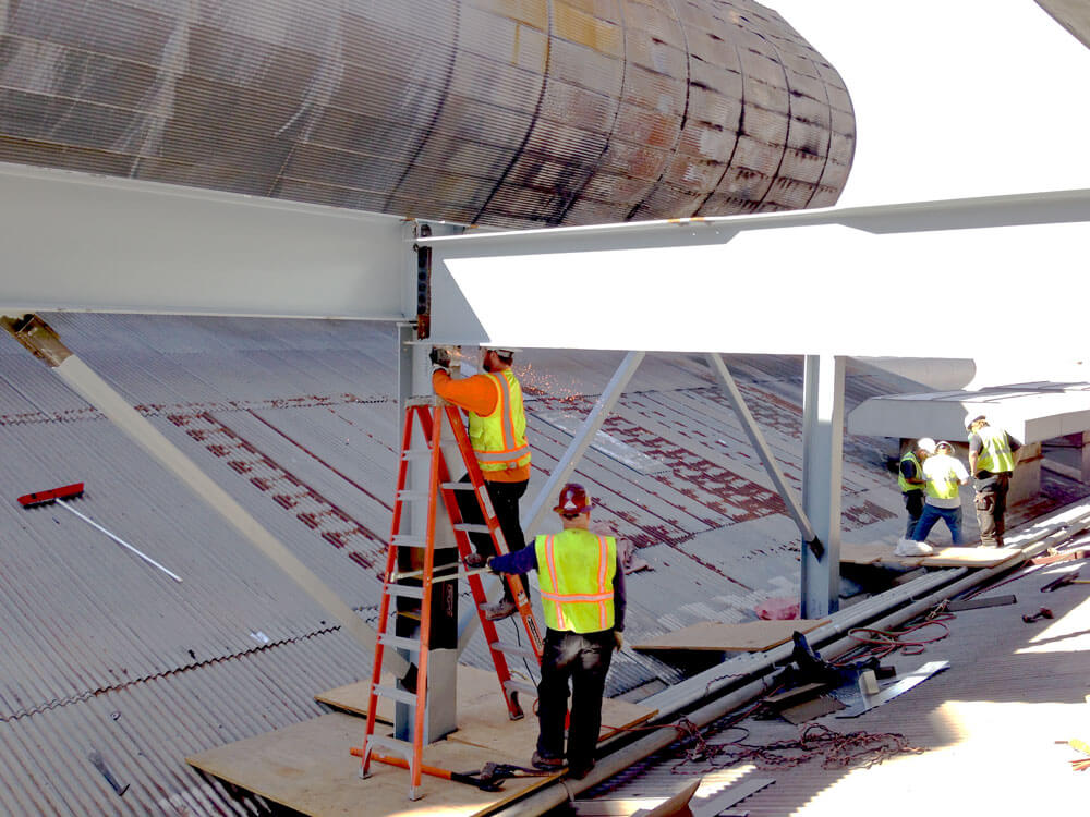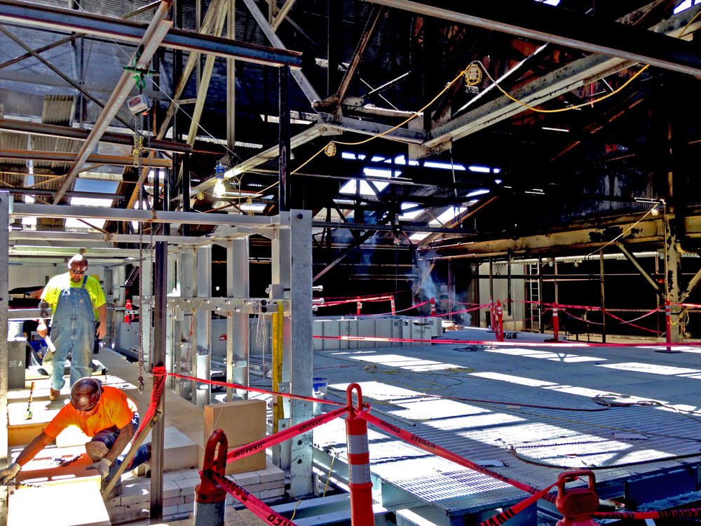 The remaining four furnaces were fully operational throughout the course of construction, creating a high-heat work environment and complicated logistical situation.