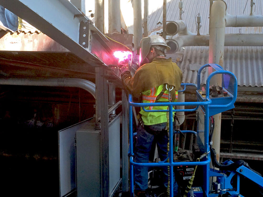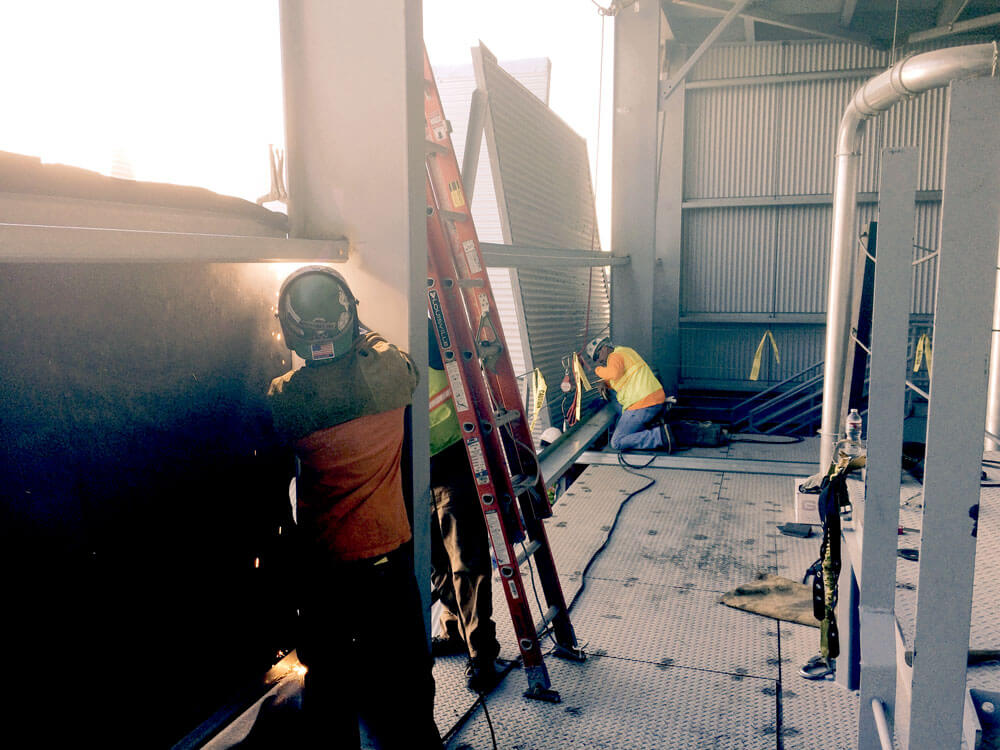 - Additional performance: Steels stair cases were fabricated on site and installed, replace stack, remove and replace roofing & siding to allow overhead access to the job site