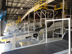 Automated parcel handling system: Integration by SilMan Industries with powered conveyors provided by supplier-partner Talos Engineered Products (Photo Credit: Ray Hawkins for SilMan Industries).