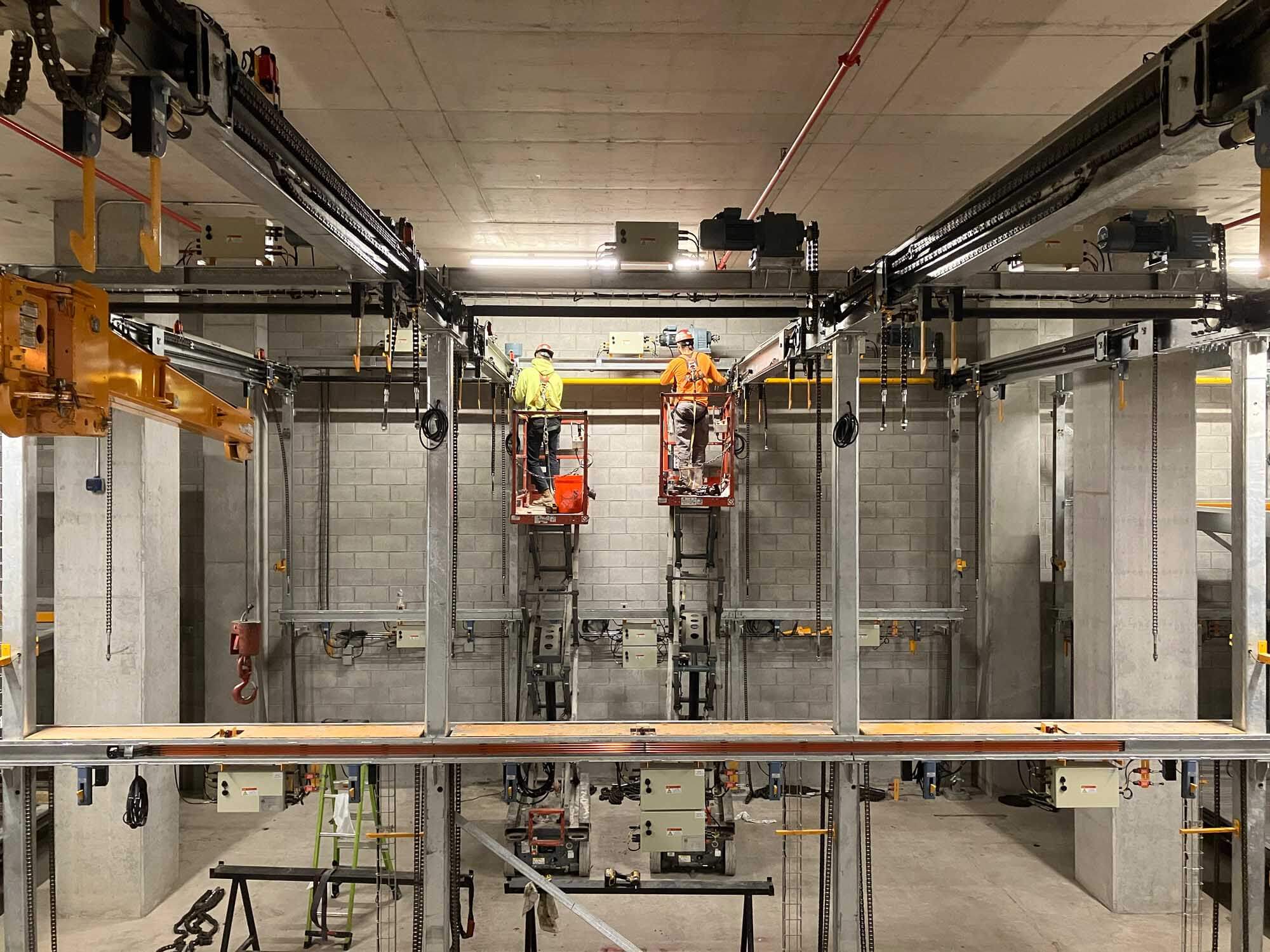 685 feet below the rooftop festivities, and down a few levels, lies a new mechanical parking system, designed to accommodate hundreds of vehicles. The system was engineered and installed by our automated parking team, known as SilMan Automated Parking Systems, or SAPS. The team has had boots on the ground since December 2022 and is scheduled to be complete in June 2024.
